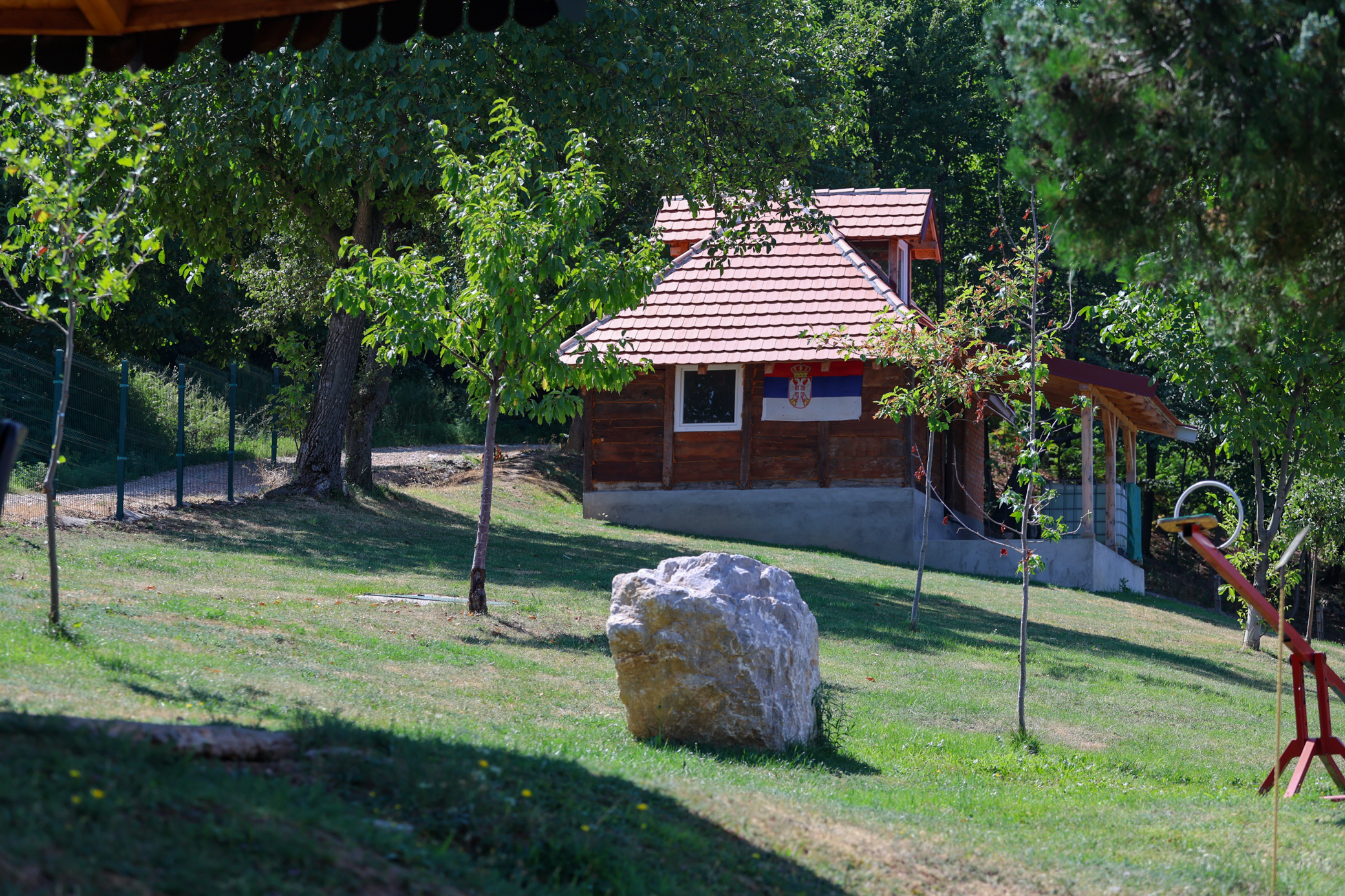 Kućica kao smeštajna jedinica osmišljena je kao skladan spoj topline tradicije i savremenog komfora, na pažljivo organizovanom prostoru koji gostima pruža potpun osećaj udobnosti i mira. Enterijer je moderno opremljen i prilagođen boravku parova ili manjih porodica, uz sve neophodne kućne aparate za prijatan i bezbrižan odmor.U okviru dnevnog boravka nalazi se udoban trosed koji se rasklapa u ležaj za dve osobe, smešten naspram televizora, idealan za opuštanje nakon aktivnog dana. Kuhinjski deo je funkcionalno opremljen indukcionom pločom, frižiderom, ketlerom, kao i kompletnim posuđem i escajgom, uz trpezarijski sto i stolice za tri osobe. Spavaći deo čini udoban bračni krevet i ormar za odlaganje stvari.Kupatilo je moderno uređeno i opremljeno tuš kabinom, a gostima su na raspolaganju fen, osnovni kozmetički proizvodi, čisti peškiri i papuče. Dodatne pogodnosti uključuju klima uređaj, besplatan WiFi i obezbeđen parking za goste.Ispred smeštajne jedinice nalazi se zatvorena terasa sa stolom i stolicama, savršena za jutarnju kafu ili večernje opuštanje. Smeštaj je okružen prostranim dvorištem koje nudi brojne aktivnosti poput košarke, badmintona, roštiljanja, kao i druženja sa konjima i ostalim domaćim životinjama.Neposredno ispod dvorišta prostire se plantaža aronije površine dva i po hektara, gde se proizvodi matični sok, a gosti u sezoni mogu slobodno brati plodove i uživati u šetnjama prirodom. Na raspolaganju su i zajednička natkrivena terasa, zajednička sala sa televizorom i kuhinjom, kao i dvorište sa više garnitura za sedenje, roštiljem, dečjim igračkama, ljuljaškama, klackalicom.U okviru Ranča Sretenović gosti mogu posetiti Muzej šume i uživati u kružnoj stazi za šetnju u dužini od 2 km, koja dodatno upotpunjuje boravak u prirodi